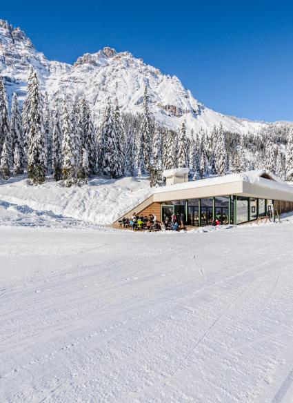 vormittags Aperitif mit imposanten Ausblick, mittags Bistrogerichte aus der Südtioler Küche, nachmittags eine stärkende Bergsteiger-Marende, Imbisse und hausgemachte Pustertaler Nachspeisen. Und immer: